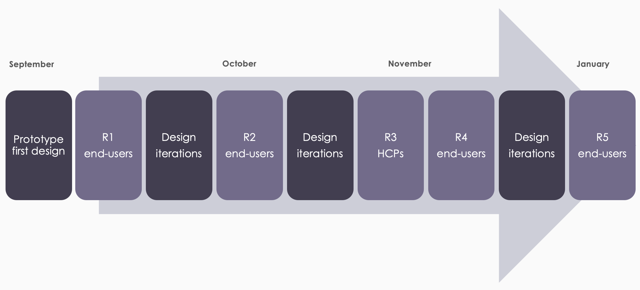 Conducting five consecutive rounds of usability testing over five months and iterating on prototypes in between can be quite challenging, especially when ensuring thorough documentation to capture every pain point, comment, and decision effectively.