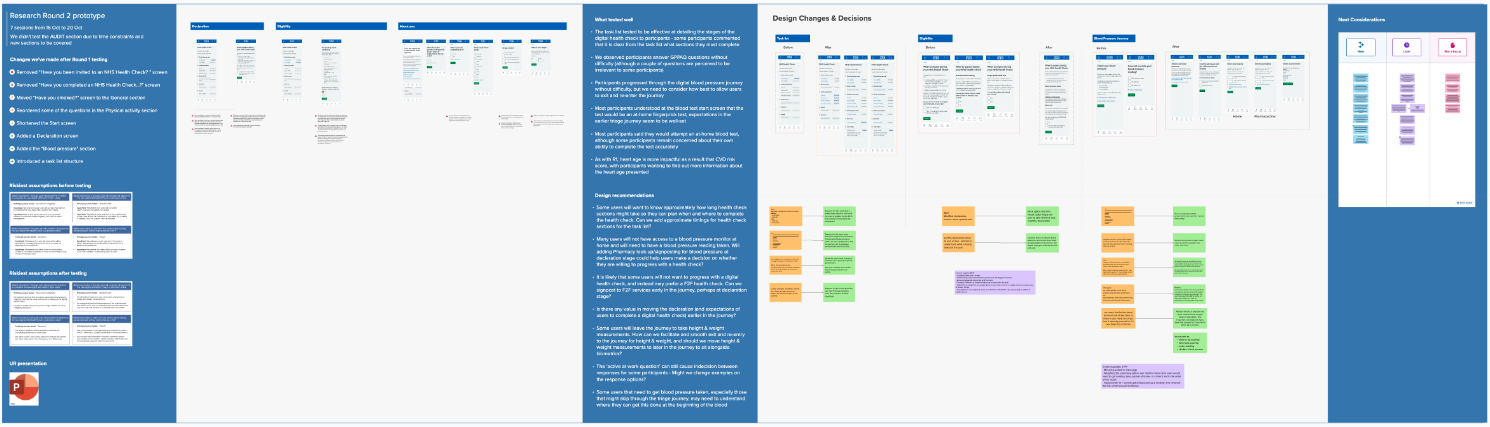 To address this, I implemented a visual system to organise user feedback, stakeholder and team comments, and every design change and decision made throughout the process. This approach ensured transparency in our work, providing everyone with clear insight into what was tested, identified pain points, recommendations, and design changes for each testing round. This enabled us to effectively track the prototype's evolution over the five months of testing and proved invaluable during presentations to clients and the Alpha assessment commitee.