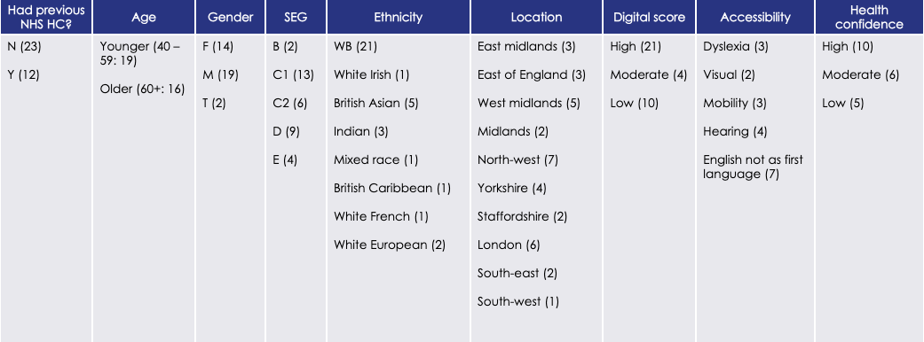 - in-depth interviews - to give us a thorough understanding of current experiences & processes, attitudes, behaviours and needs for a future service
